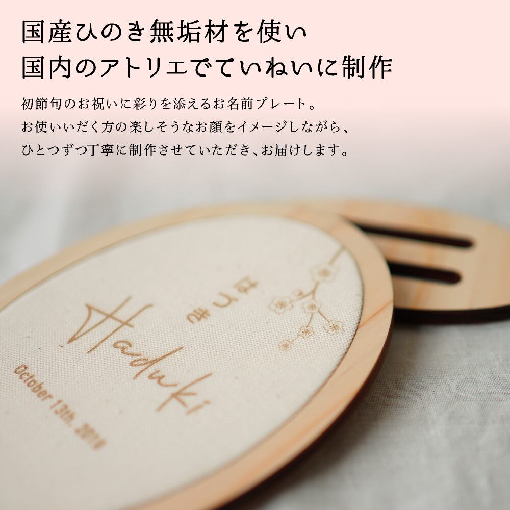 国産ひのき無垢材、未晒しコットンを使って、とっても可愛いお名前プレートが完成しました。