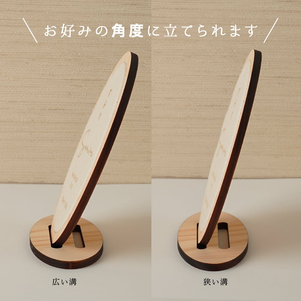 スタンドは幅の違う2つの溝があり、立てる角度が変わります。